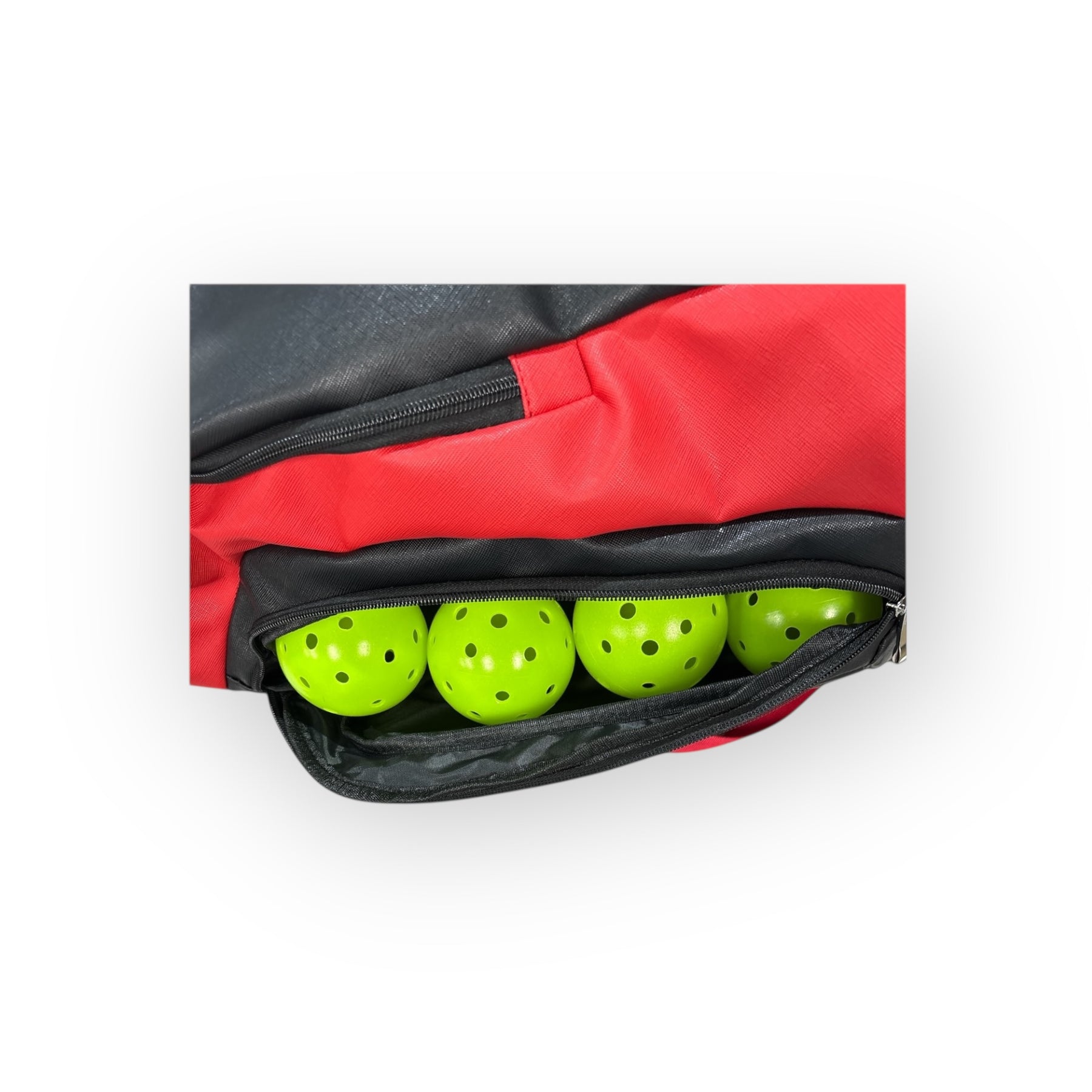 Multiple compartments for balls, grips, water bottles, and essentials.